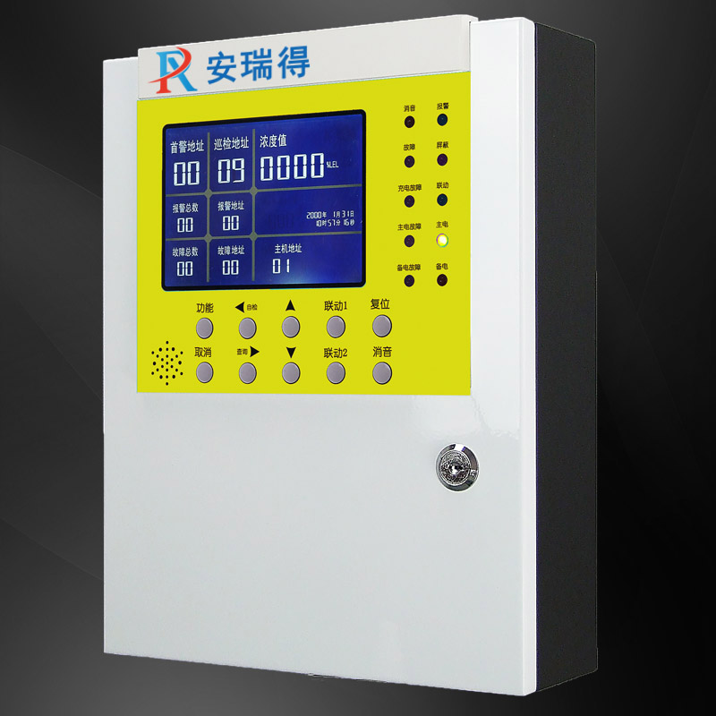 ARD-K6000-ZL型可燃有毒氣體控制器通過查詢方式獲得探測器信息,經(jīng)過高速CPU數(shù)據(jù)處理,通過LCD顯示出探測器相應(yīng)的濃度、狀態(tài)并輸出相應(yīng)的控制信號。